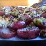 Toss gently with spatula to make sure everything is evenly coated before throwing it in the oven.
