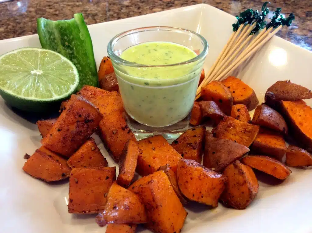 Sweet Potato Bites and Spicy Cilantro Aioli